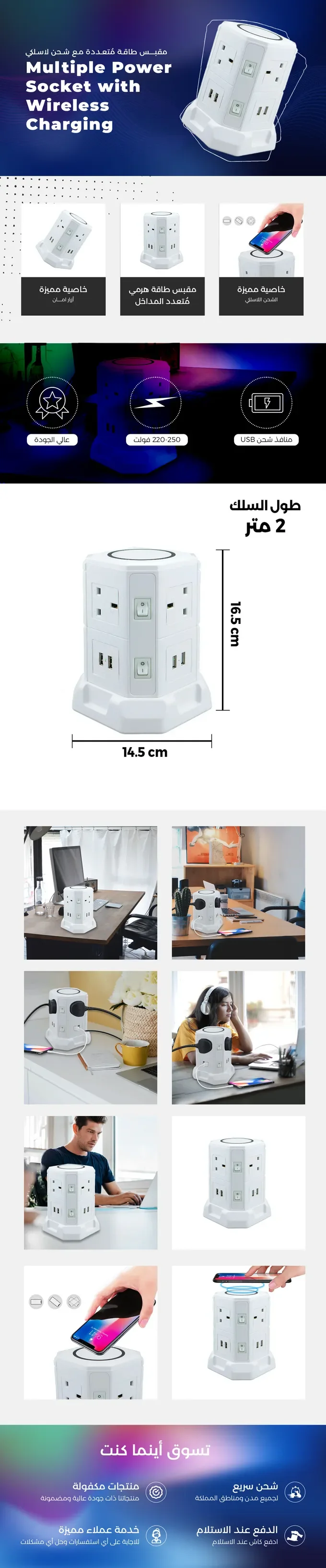 لوحة مقبس برجية قائمة USB متعددة الاستخدام
